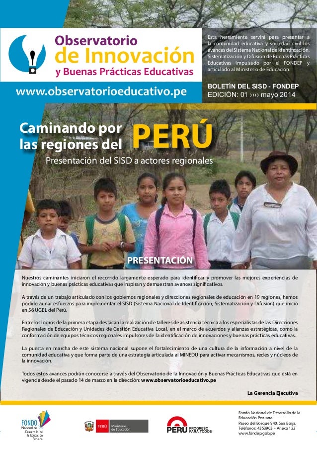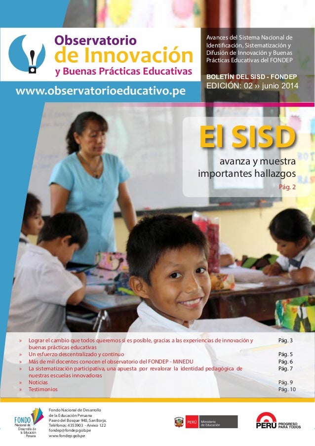 El Fondo Nacional de Desarrollo Peruano (FONDEP) presenta, a través de este Boletín, a la comunidad educativa y sociedad civil los avances del Sistema Nacional de Identificación, Sistematización y Difusión de Buenas Prácticas Educativas impulsado por el FONDEP y articulado al Ministerio de Educación
