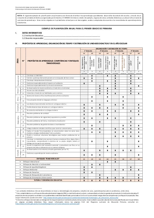 Ejemplo de Planificación anual Primer Grado de Educación Primaria - MINEDU from Teresa Clotilde Ojeda Sánchez - IE.5136 Fernando Belaunde Terry