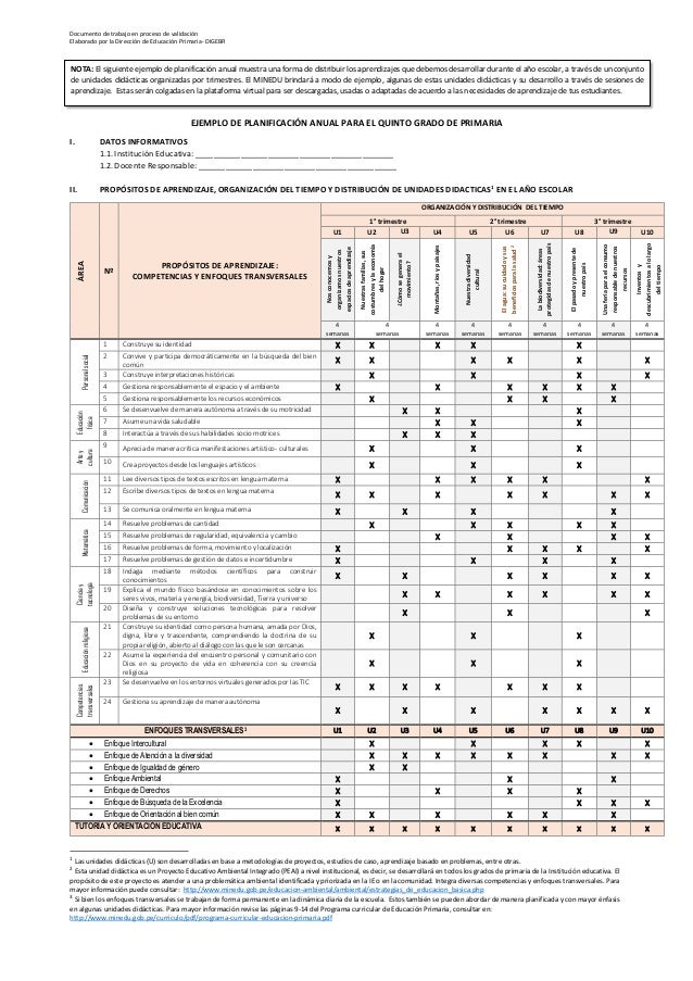 Ejemplo de Planificación anual para el Quinto Grado de Educación Primaria - MINEDU from Teresa Clotilde Ojeda Sánchez - IE.5136 Fernando Belaunde Terry
